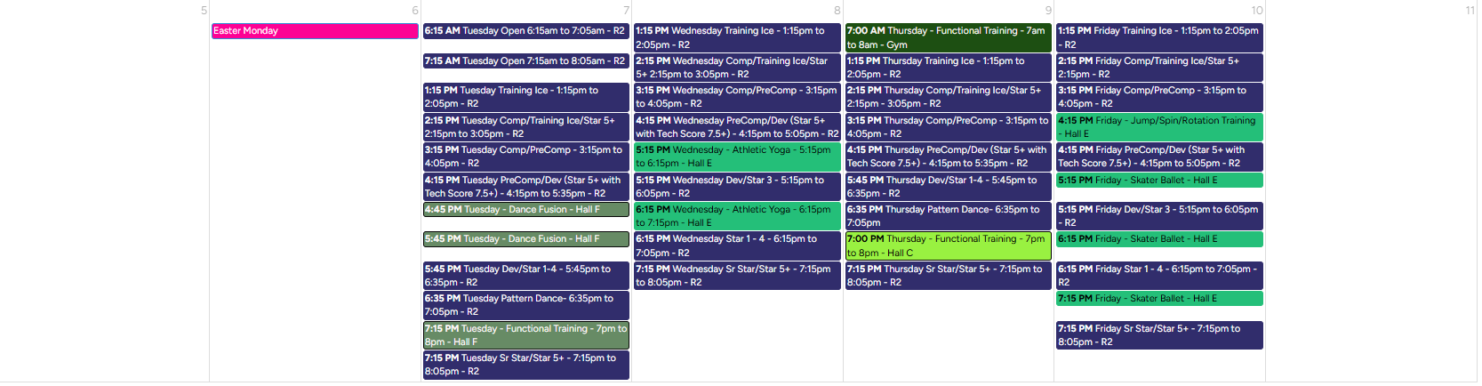 2026 Spring Off Ice Schedule